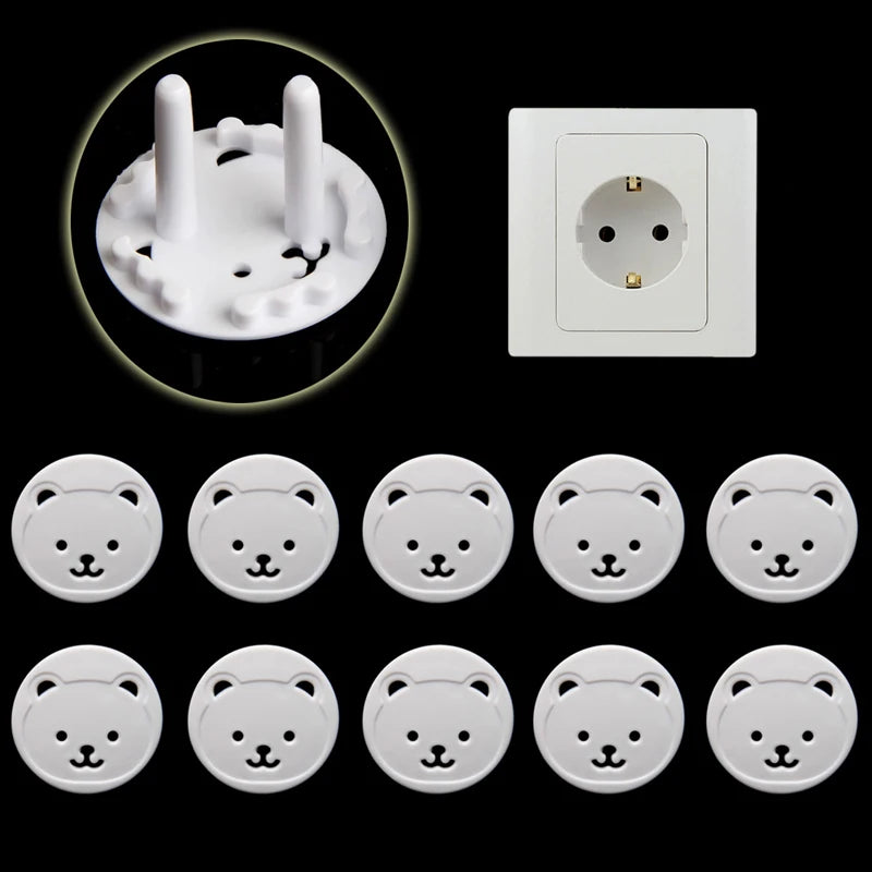 10pcs Bear EU Power Socket Electrical Outlet Baby Kids Child Safety Guard Protection Anti Electric Shock Plugs Protector Cover