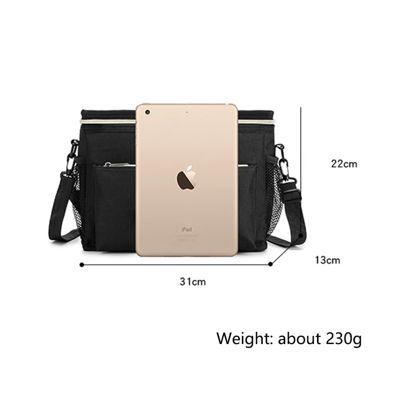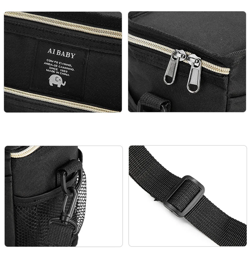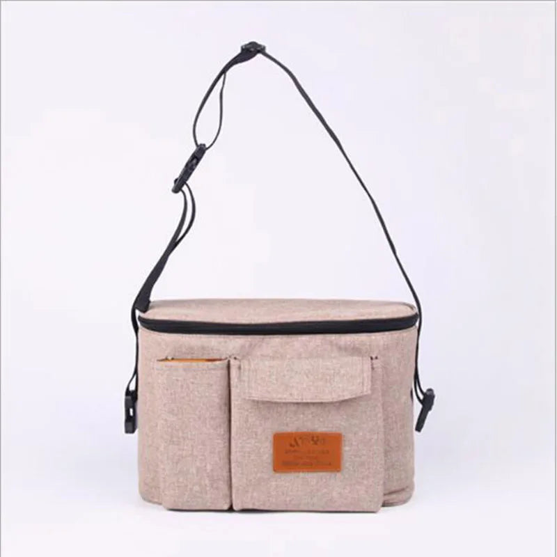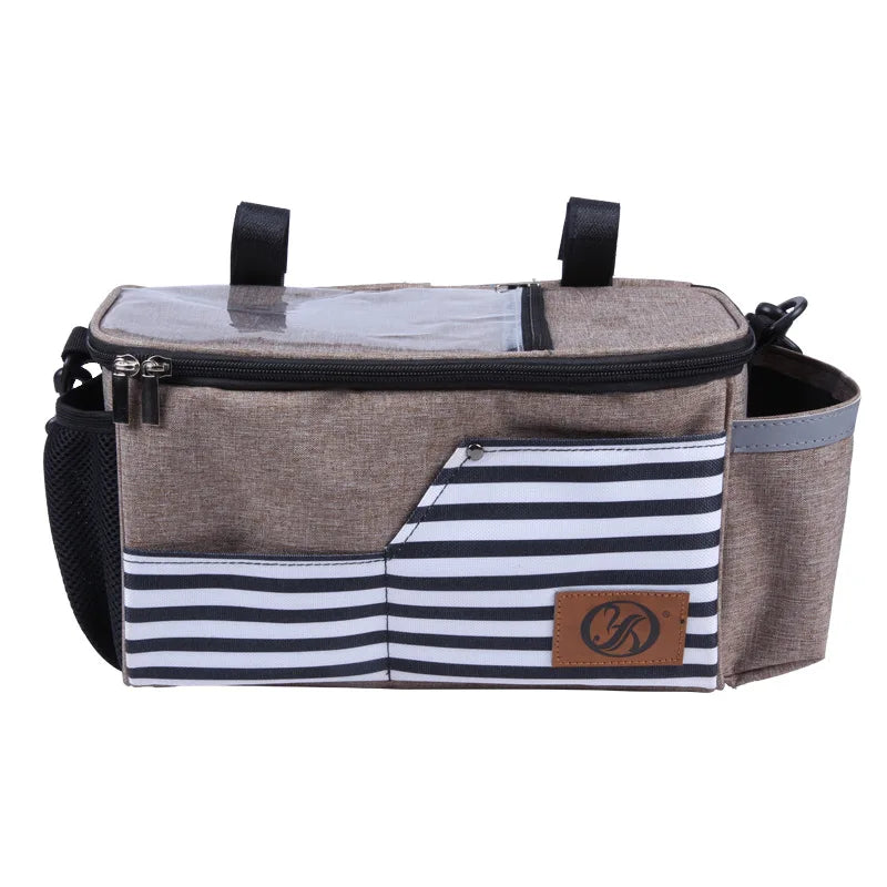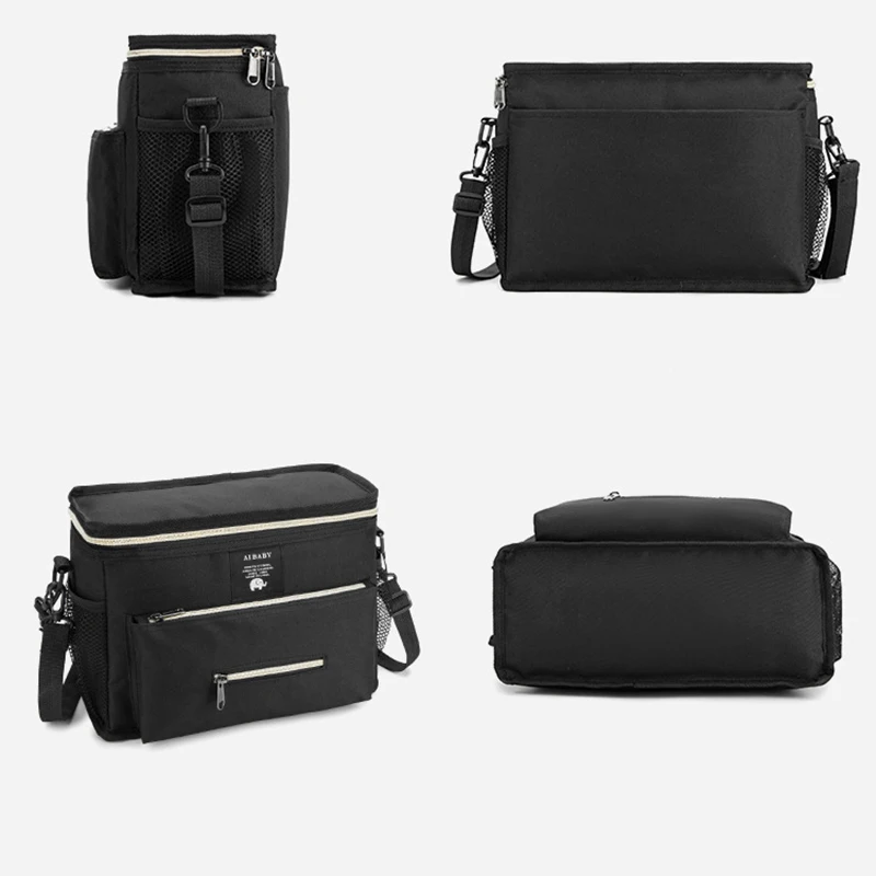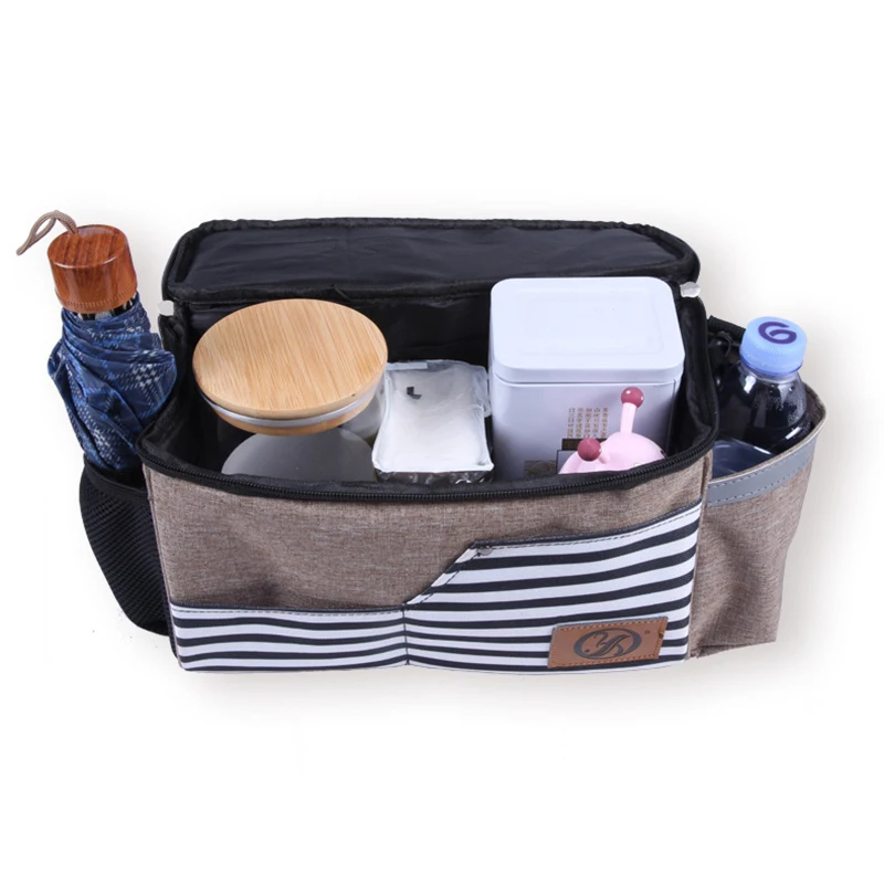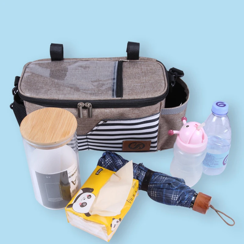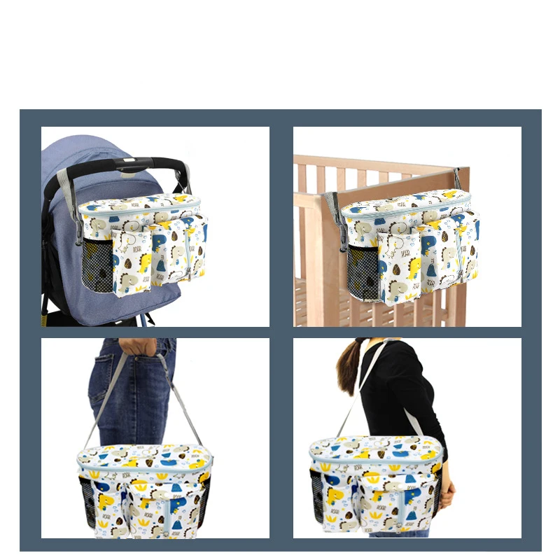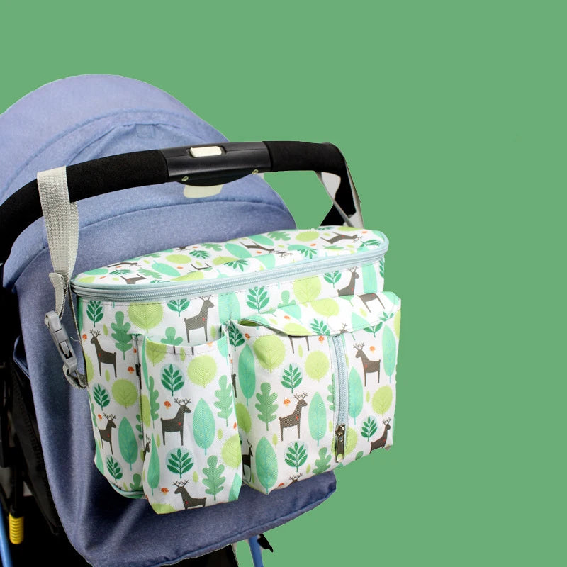 It's separated design stroller diaper bag, main bag is for baby's water bottle, milk bottle, nappy, toys, mummy's phone etc. the bag can hanging onto stroller, cart, wheelchair etc.