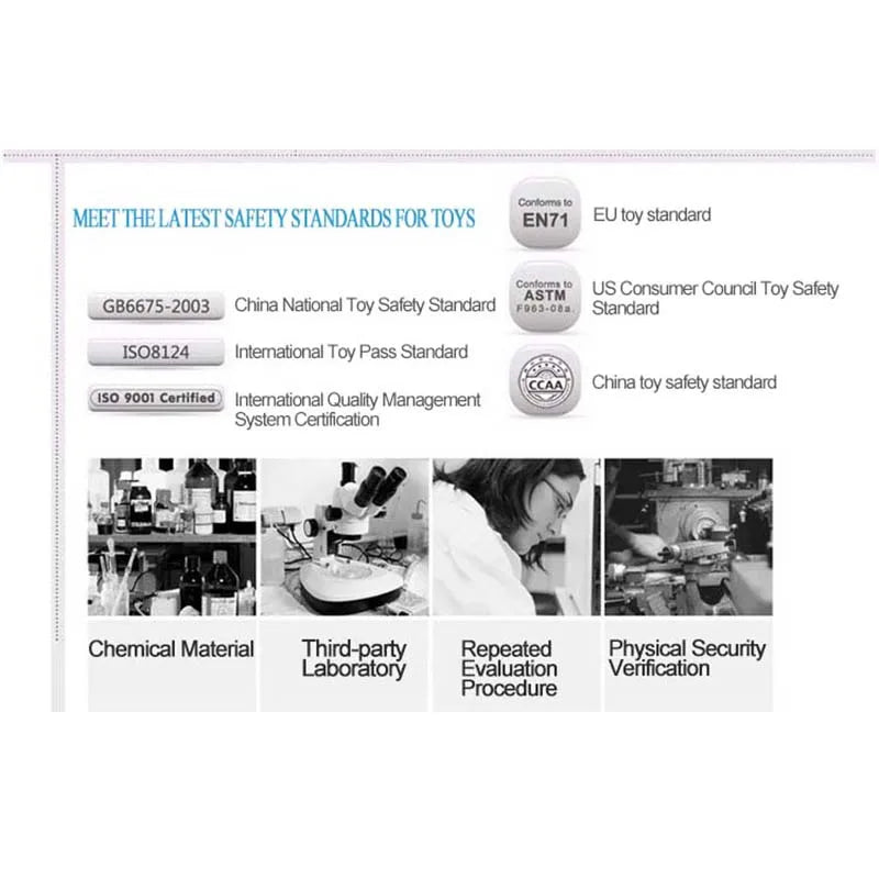 The products are strictly implement the latest international toy standards, please rest assured customers to buy.