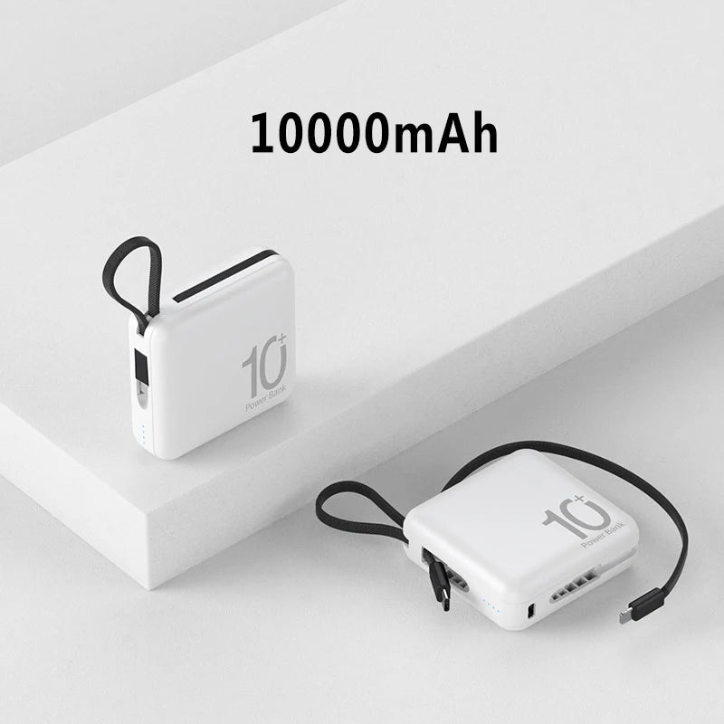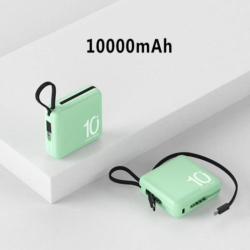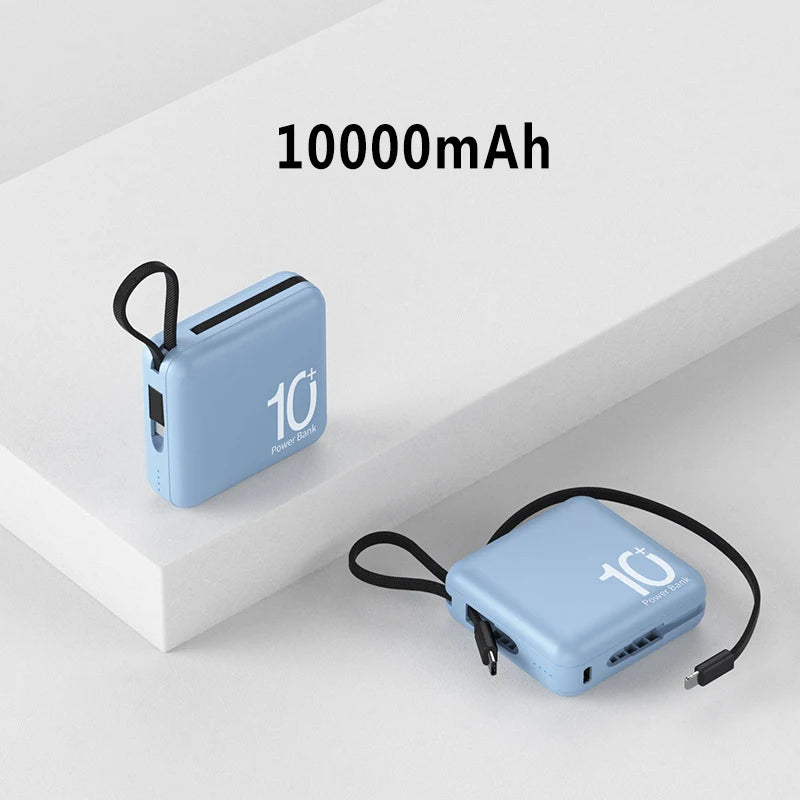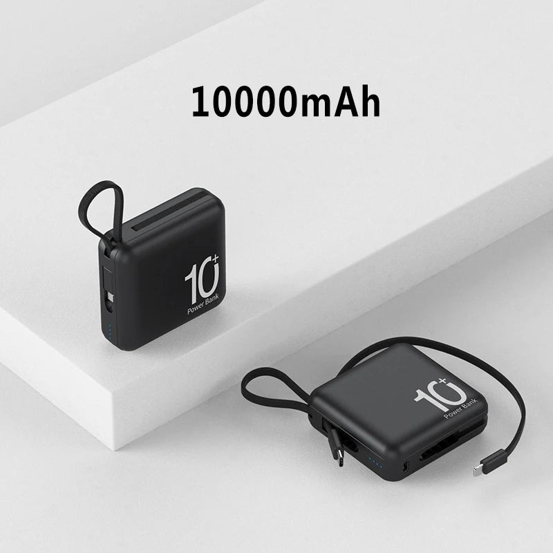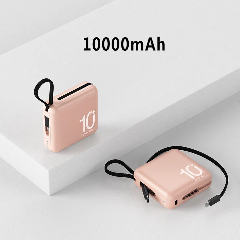 Mini Power Bank Built-in Cord Portable Micro Compact Power Bank 10000mAh Fast Charging External Battery Mobile Phone Accessories
