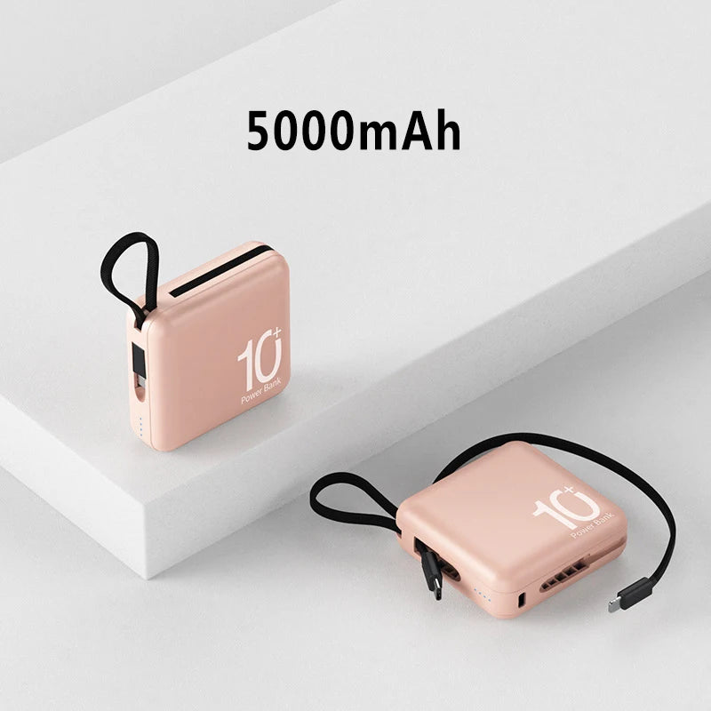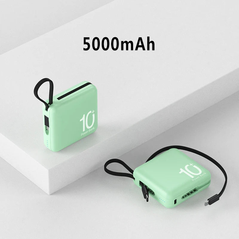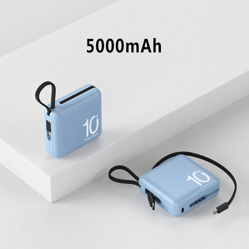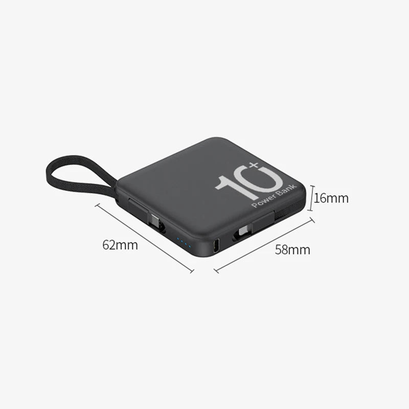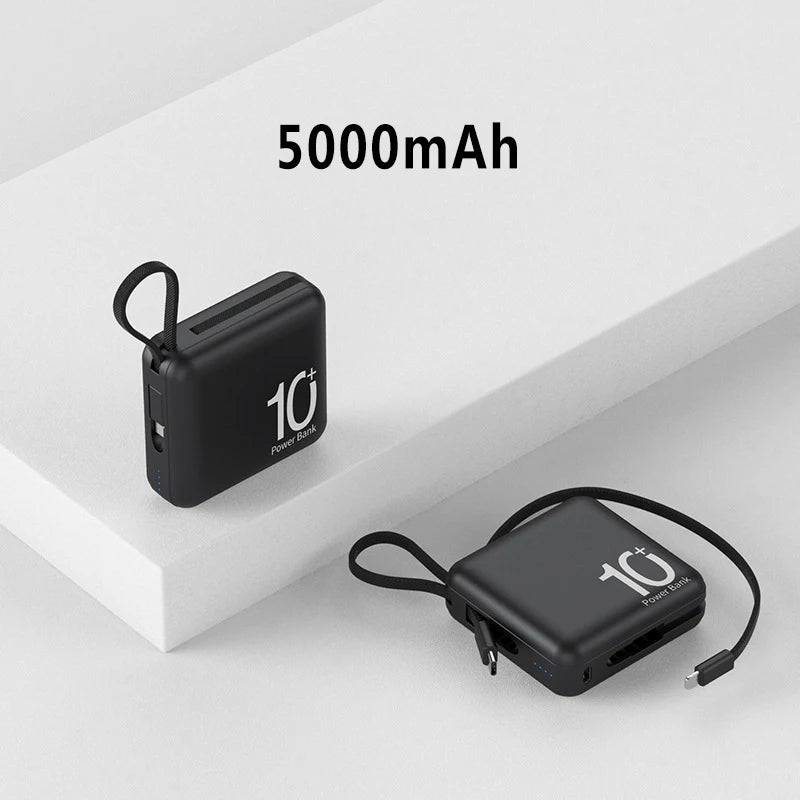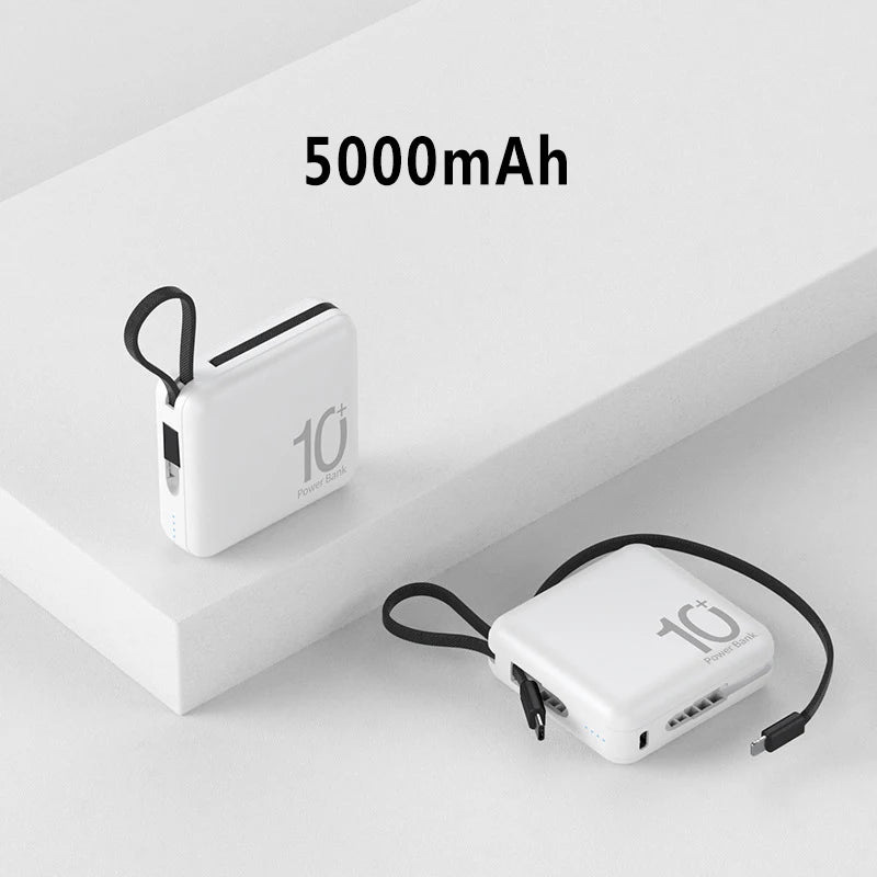 Mini Power Bank Built-in Cord Portable Micro Compact Power Bank 10000mAh Fast Charging External Battery Mobile Phone Accessories