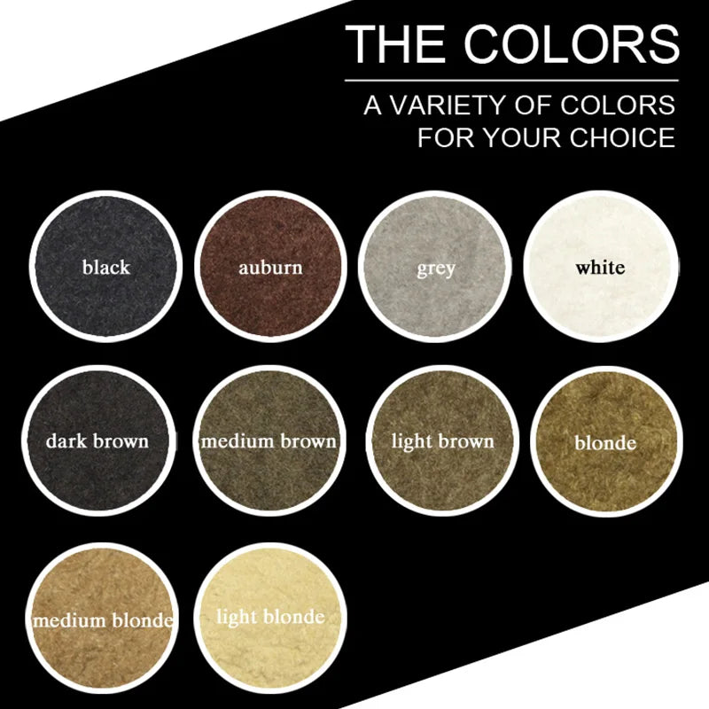 Usage method: .Suitable for wonmen and Men. .Make sure your hair is dry .Shake bottles over thining area. .You may adjust the amount of fibers on hair. .Gently pat hair to disperse fibers.