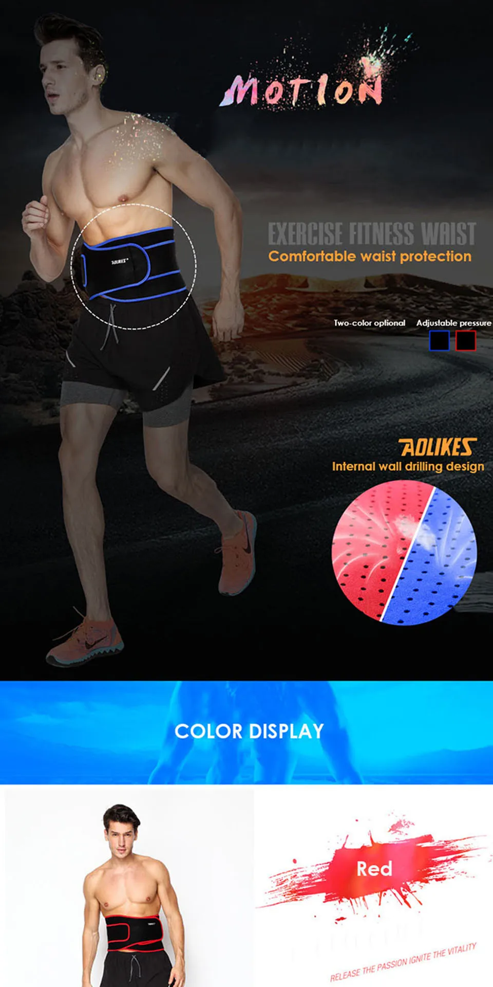 AOLIKES Professional Adjustable Breathable Sport Pressurized Back Waist Support Elastic Fitness Bodybuilding Brace Weightlifting