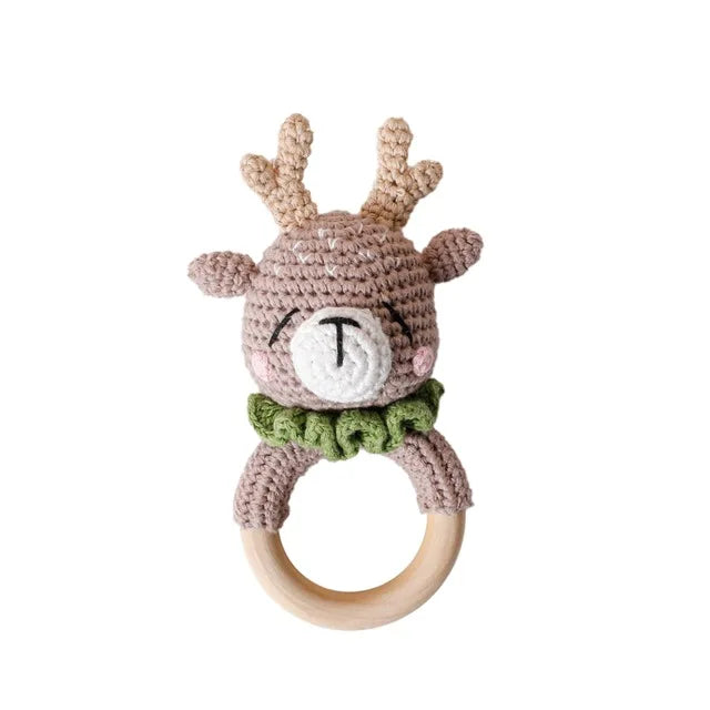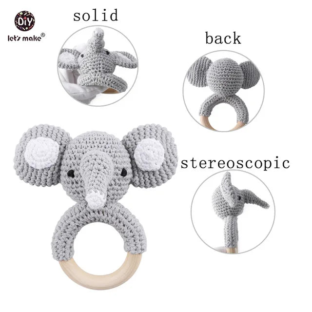 Newborn Baby Toys 1pc Wooden Teether Crochet Pattern Rattle Elephant Rattle Toy Newborn Amigurumi Teether Baby  Rattles Gift
